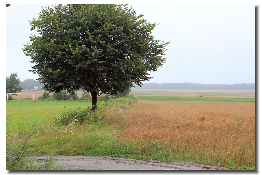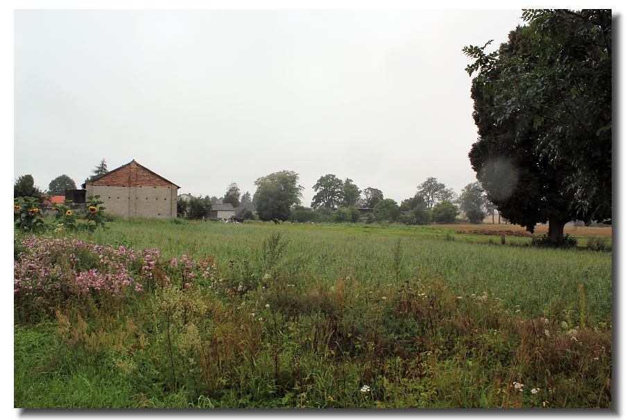 | 2011: Blick über die Felder (nach links). Vor dem weißen Haus links im Bild verläuft die Landstarße von Wissek nach Krojanke |