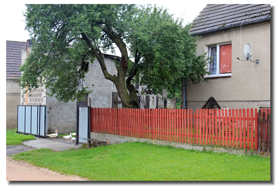 | 2011: Der Hof von T. und M.S. in Preußenfeld. Das ehemalige Wohnhaus wurde im Jahr 1976 durch das abgebildete Haus ersetzt. Das alte Haus war niedriger und besaß ein Dach aus Schilf |