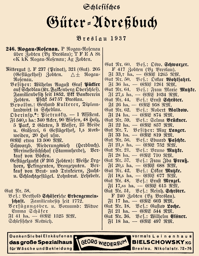 | 1937.. Güteradressbuch: Rogau Rosenau (Rogow Sobocki) |