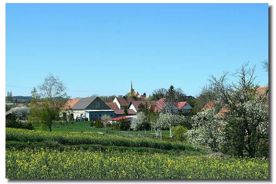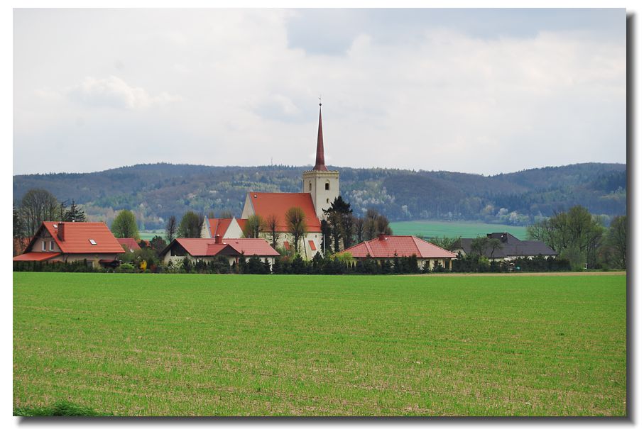 Nieder Bögendorf, die katholische Kirche von Gut 52 -Heide aus